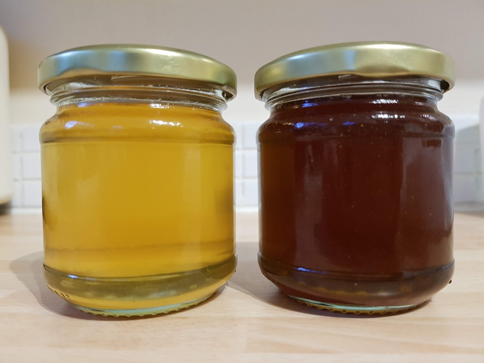 We have harvested our late summer honey this week. Last time it was a lovely amber colour but this time to our surprise it was a beautiful tawny brown, with a strong and fragrant taste. I am starting to sound like a wine taster, but there were no notes of vanilla in this honey. We are not sure what has made the difference but suspect that the last lot was more agricultural crops based and this might have been more woodland but really we are not sure. The drought in our area might have affected it, it might just be more concentrated as there is less moisture around. All the charts we have seen though suggest that the dark colour might be as the honey is based around horse chestnuts ? we are not really sure on that but it sounds really good so I am sticking with it.