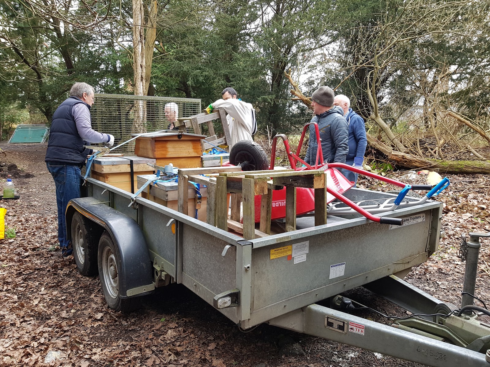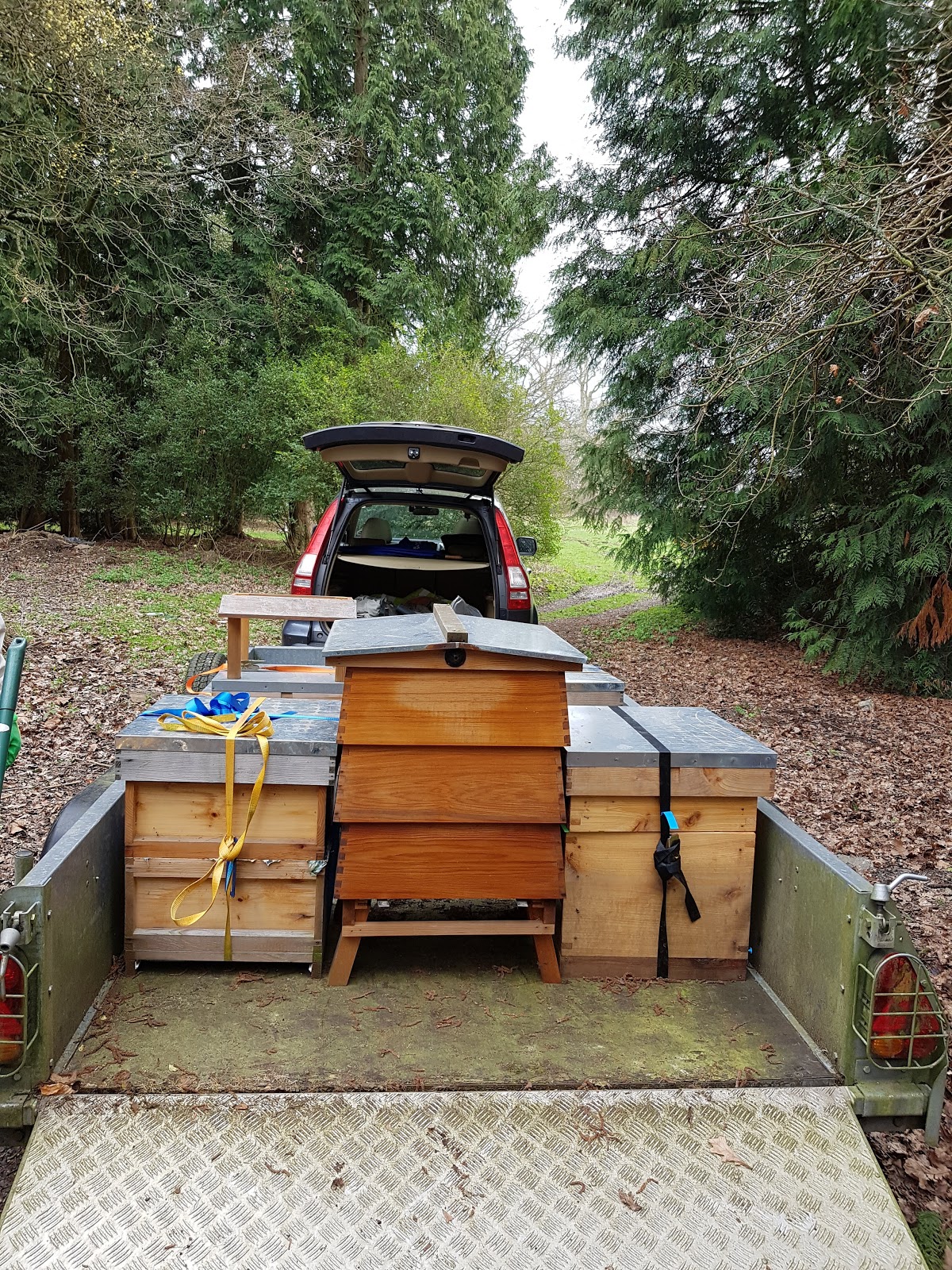 Our hive is a small neat affair but the others were a bit more substantial so I really should not have been surprised when someone turned up with a trailer. Along with the trailer were three helpers, all the beekeepers, the apiary manager and the chair of the bee keeping association. Thats a-lot of people considering no-one came to say goodbye to us. Packing the trailer turned out to be very technical, a bit like BBQs are, so I didn’t get involved in that but left it to the other folk there.